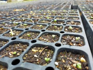 安いパレットに植えたものよりも、2日おくれて高いパレットに植えたにも関わらず、先に高いパレットのやつから芽が出ました。