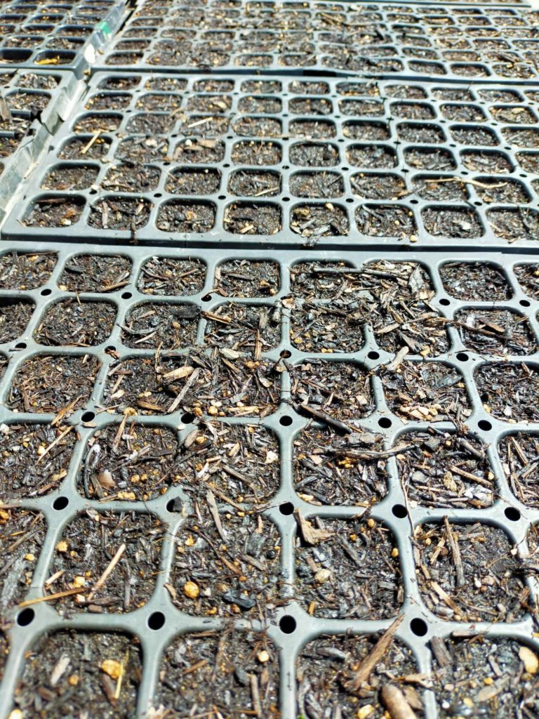 直播きでもよかったんですが、まずは丁寧に、日本えごまと同じようにパレットに種を植えてみました。